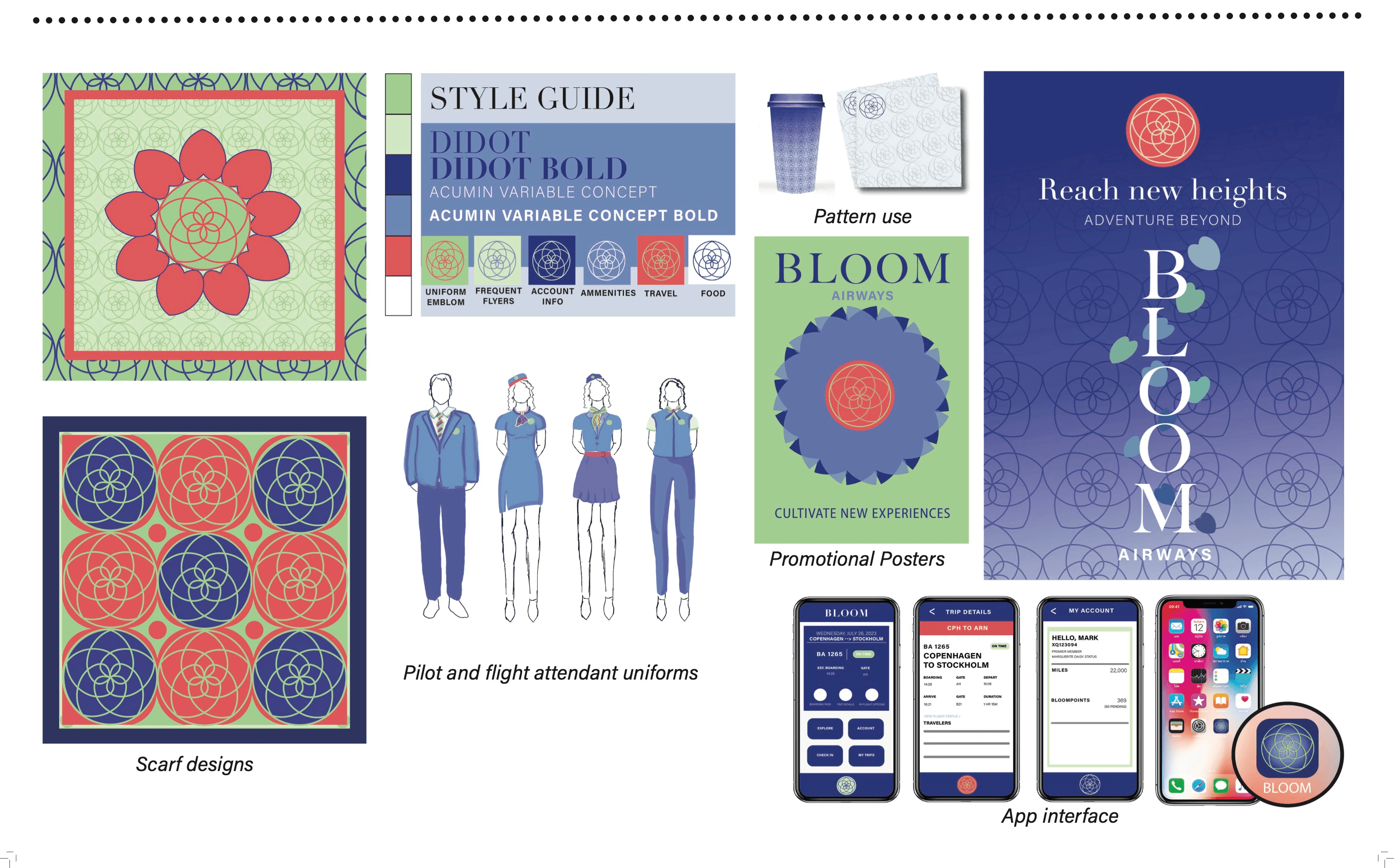 Created in the Graphic Design Studio course at the Danisn Institute for Study, Bloom Airways is a fictive airline inspired by the landscapes and values of the Nordic countries.