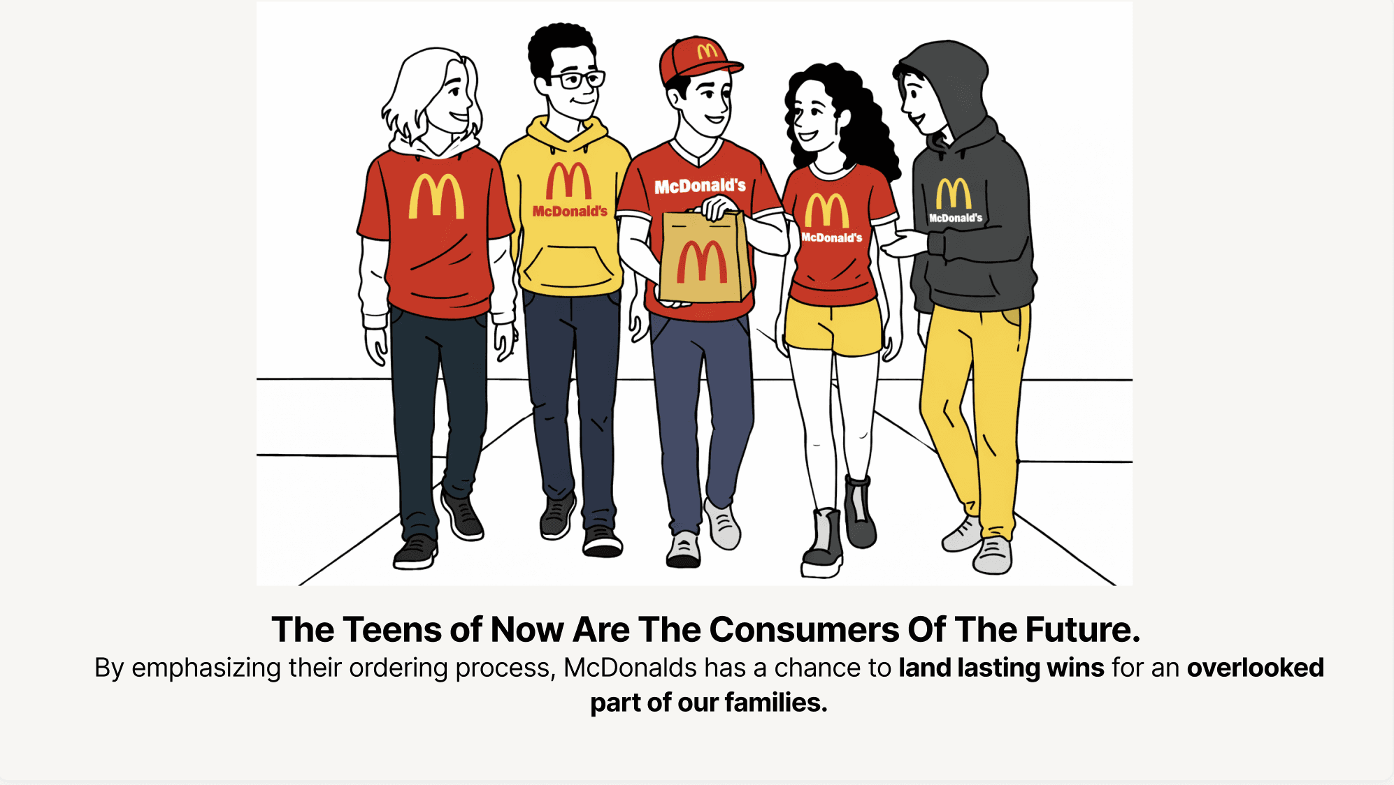 Teens often stop at McDonald’s between activities, revealing a family segment that extends beyond parents and kids to include friend groups.